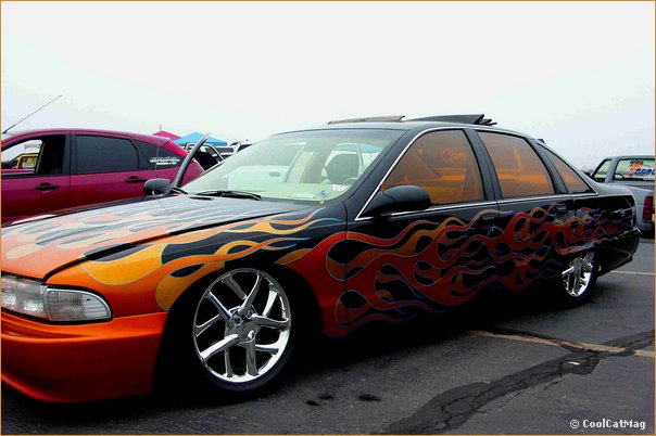 8 Gallons of Dupont clear and days of color sanding. Deeply buried Kandy flames (House of Color custom mix) these flames jumpout at you in the daylight.Door jams are equally as nice. Shaved deck lid, Fiberglass front and rear bumper covers w/billet inserts. Fold back canvas sunroof.