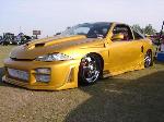 Octane front bumper, molded Street fighter side skirts, Xplozion rear bumper, VIS Bullet Fenders, Dual ram air hood, APC euro projector headlights, Clear corner lights, APC M3 sport mirrors, Custom made eyelids, Shaved door handles, locks, antenna, and taillights, 2 13" LED strips, NSX vents, racer spoiler, flip-flop trunk, custom paint job, ghost flames