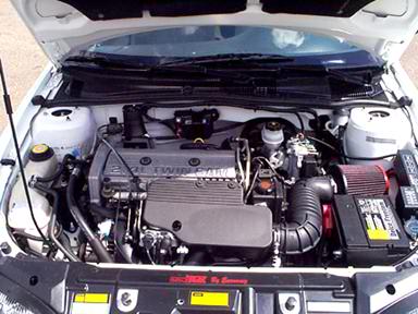 Stock 2.4l with a K&N conical filter, no cat or resonator, Raven dual DTM tip muffler, and removed tuner tube.