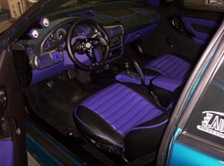 Custom Purple and Black Leather and Tweed, Dash Mat, Faris Gauges, SPEED Steering Wheel, Insane Short Shifter, Sphere Shift Knob,Custom Paint, Strobes, Iron Cross Rear View mirrior