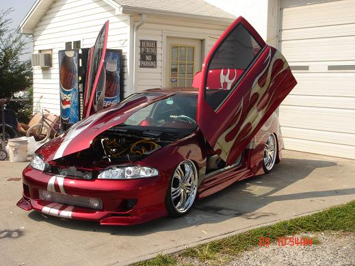 HoK kandy brandywine paint with HoK orion silver and kandy purple graphics-airbrushed-shaved handles,mirrors,trunk,taillights,and a pillars-custom made hood all metal-mitsubishi eclipse front end conversion-molded front and rear bumpers and skirts-corvette taillight conversion-motorcycle gas lid custom molded
