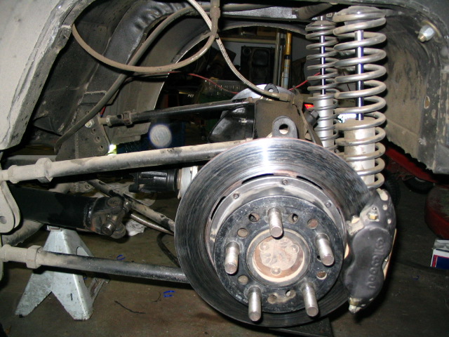 Backhalved car with 4 link and adjustable coilovers in the rear, front is adjustable struts, with wilwood brake system