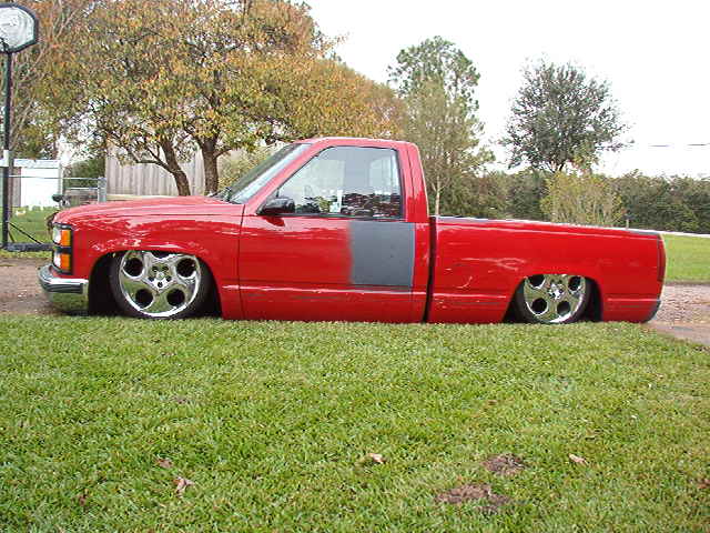 3 gay ass air lifts (one blew the crimp ring off) and one firestone 224, 1/2" GC 250s, 1/2" copper air line, 7 gallon tank and a viair 450