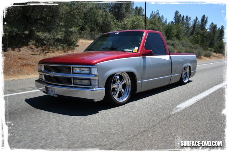 stock floor body drop to the doors on 22's and a 4' gentleman chop. completely shaved with caddy lights.