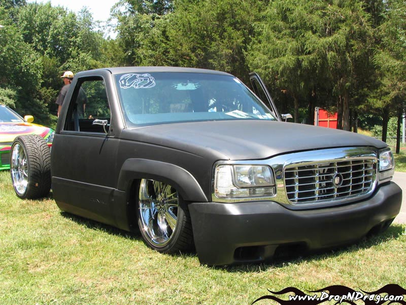 shaved doors ,antenna,mirrors,rain pockets,gas tank,brake lights,3rd brake light,tailgate molded shut.denali full front clip including doors and rear panels.custom hand made steel gas tank located under the bed.graffics in the door jambs sheetmetal bed