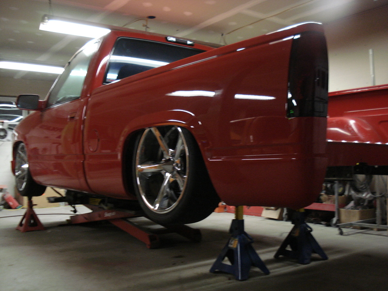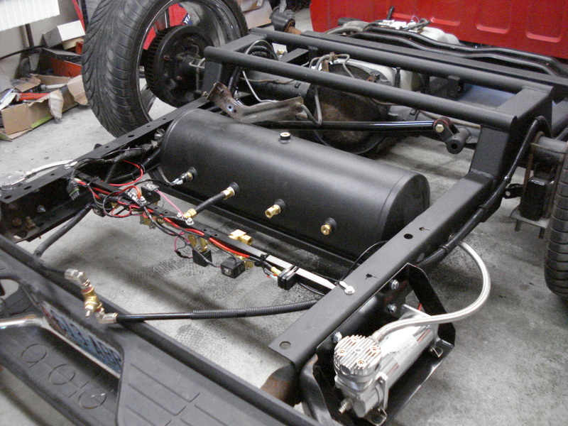 Ekstensive 2-link and cups,slam re-7s,4 1/2 smc,4 3/8 smc,duel viair 480s,8 gallon tank all mounted under the bed