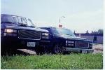 black,gmc grill w/billet insert,smoothed painted diesel bumper with billet,euro tails,smooth steel roll pan,2" lift,285/70R15 on 15x8 rockcrawlers