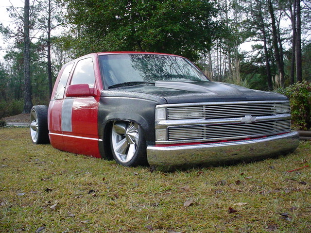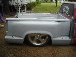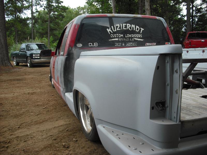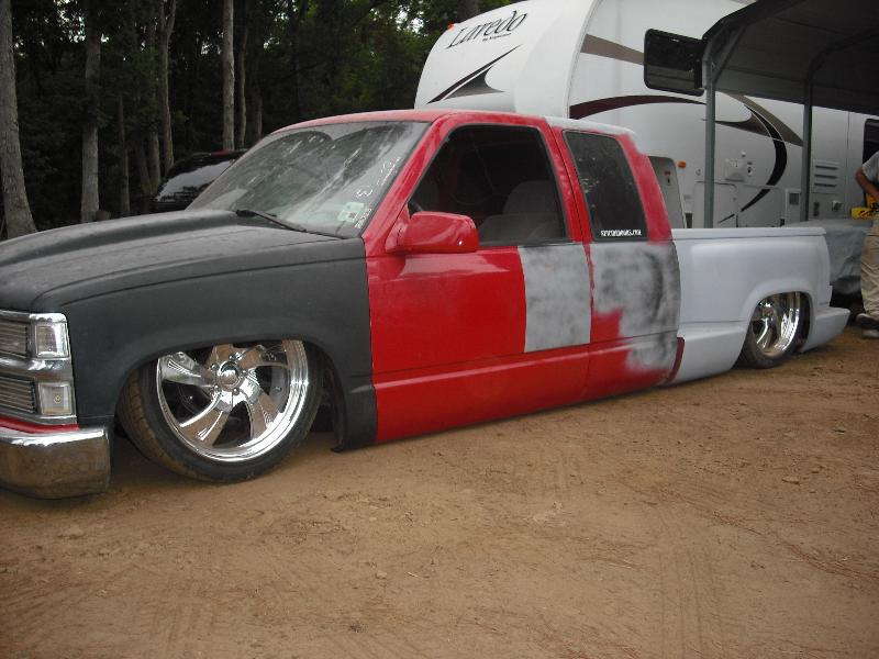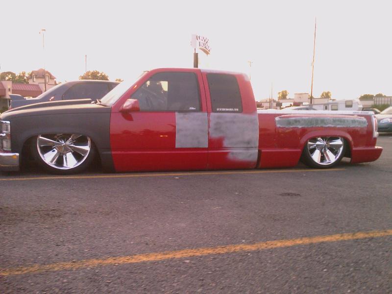 shaved doors, shaved third brake light, shaved gate and license box,phantom grill, clear corners and everything else still up front, raised the fenders for the 22s,shaved stake pockets, welded up the snaps where the old cover used to go, dropping the truck off for the fenders to be finished out as well as the remainder of the bedwork completed....http://www.rabsbodyshop.net/Default.aspx?tabid=641 Got the gas door shaved, the roll pan molded in and all the exterior bodywork done on the bed.....