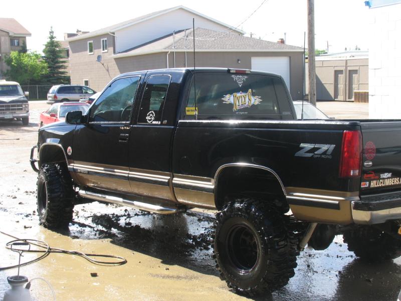 Custom brush guard with winch mount, crystal headlights, corners, signals, tinted windows, chrome step bars, 4 kc daylighters on front bumper, neon underbody kit, neon under bed rails