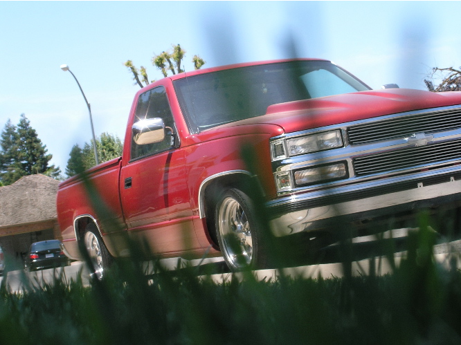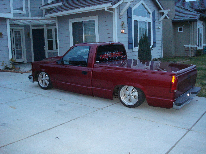 stock red. bullet hole from a drive by in the rear bumper. only reason i havent gotten a roll pan is cos i love the bullet hole.. and it gives something to drag