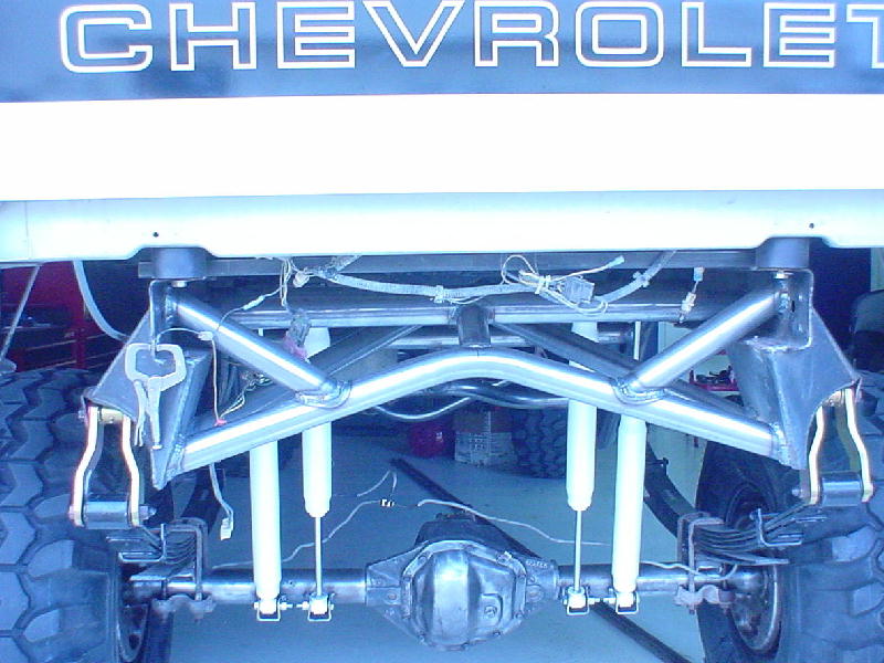 Straight axle conversion,with 1979 1-ton ford axles. Tube rear subframe.shackle inversion gets 13" of lift out of the 23" total.funfunfunfun