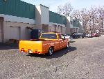 Clean and Shaved. Lowered 5/7". PPG Tangelo Orange with Custom Flames outlined in PPG Royal Blue.