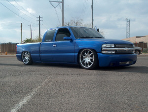 Airide Suspension all the way around 10 switch box with a 9 gallon tank and also 2 4.5HP compressors fillin em up. All customization and fabrication done by Drew Brothers Customs w/ Trevco Desgin