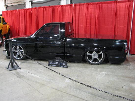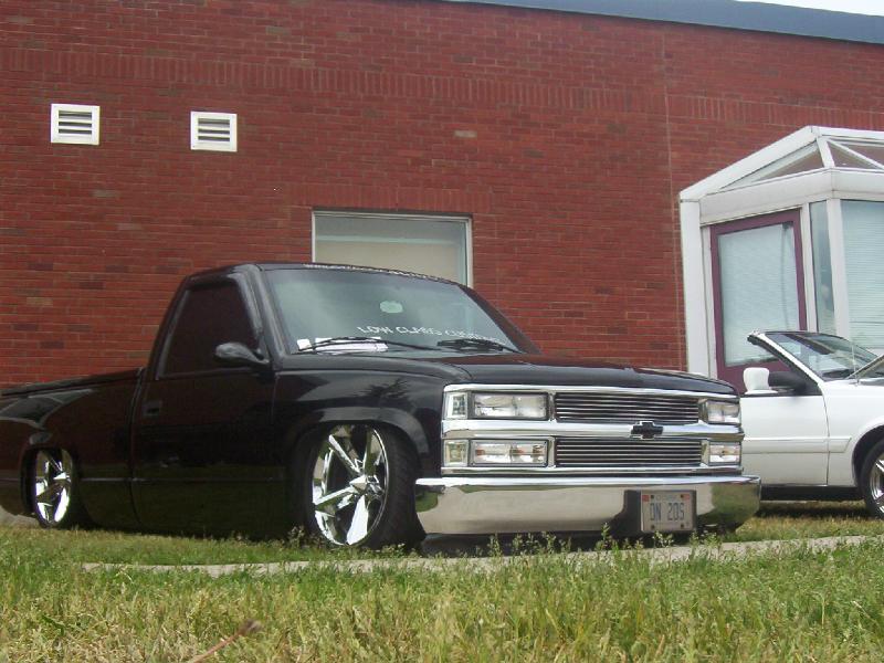 billet grille, smoothie front bumper, fiberglass tonneau cover, street vision mirriors, steel smoothie roll pan, shaved trim, antenna, tailgate & tonneau cover handles. plate frenched in gate. TYC tails, APC headlights and corners.