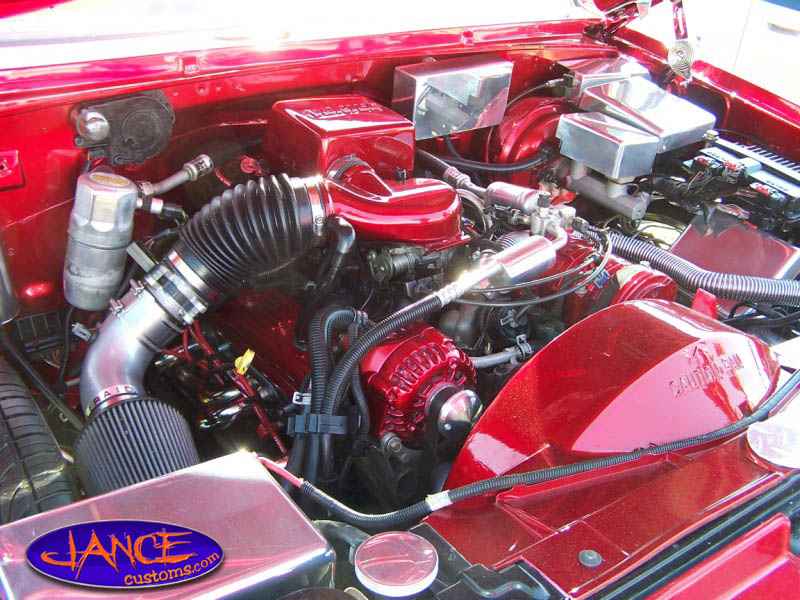 350 vortec with some painted pieces and billet pieces on the engine