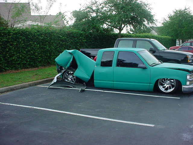 ss calvu mirros, shaved door handles, primer green. bed rails, antenna ,skin and lights shaved and top body line