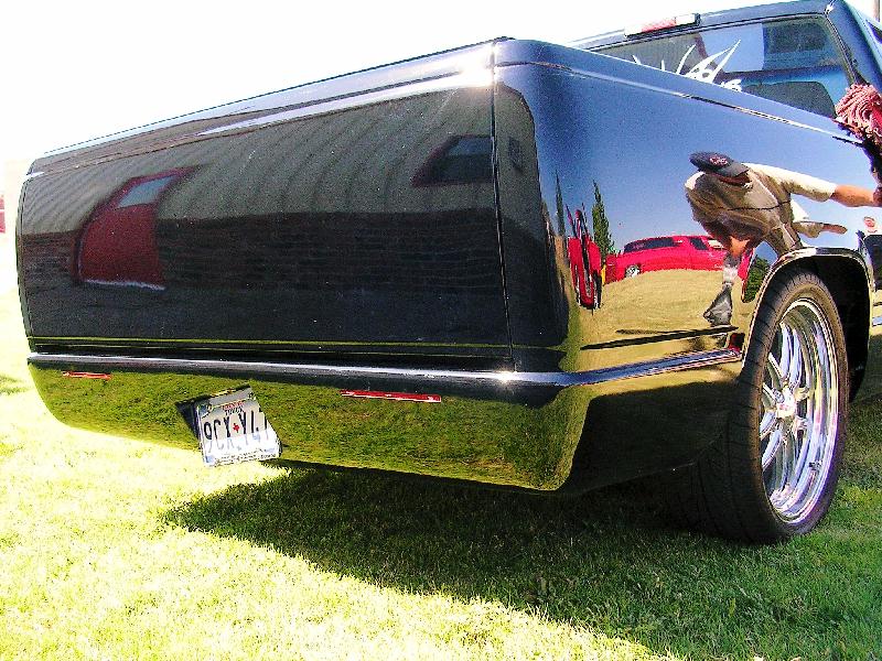 Black, shaved stake pockets tailgate handle, tail lights, GMC grille, flush mount bed cover