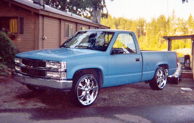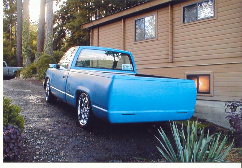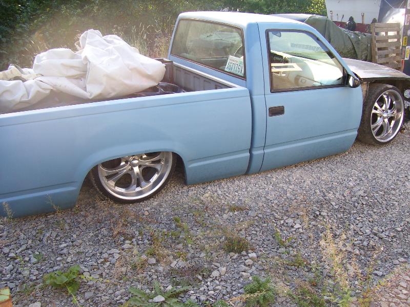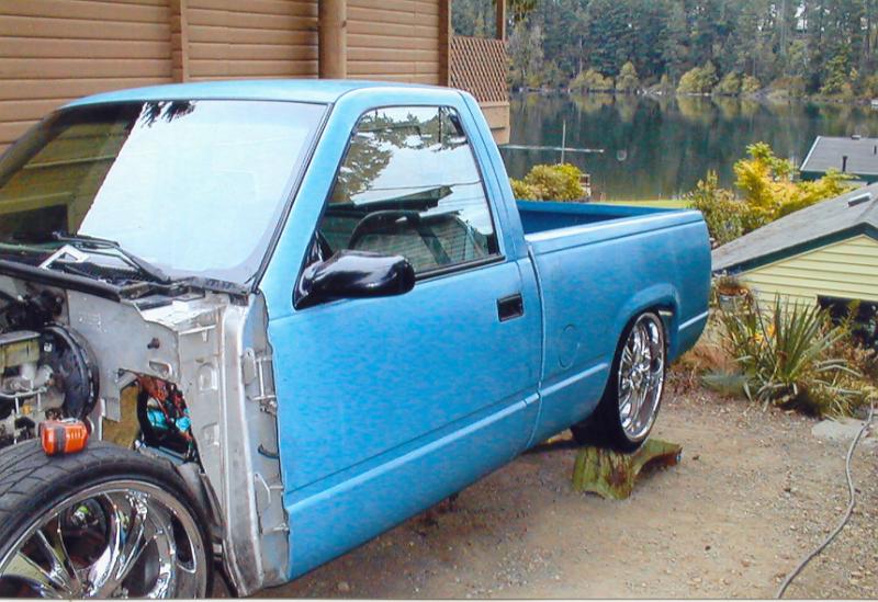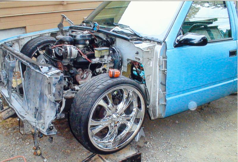put in a v8 finish the bed body and paint fully painted interior new wheels put on my denali front clip