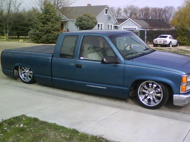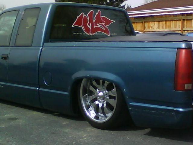 10" notch, Custom four link, 4 2600 Bags and 9 gallons of air storage. Built by ABS Customs.