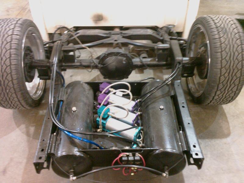 Bagged 1/2 valves slam all they way around. Wishbone link bag mounted on bar 18 gallon of air Layed cut and tubbed for 24"