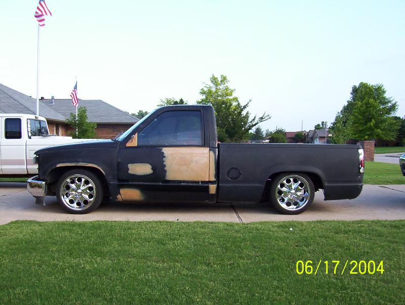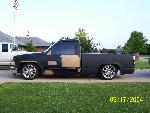 shaved tailgate, door handles, molded rollpan, billet mirrors,HoK onyx black with ocean blue and Ice pearl