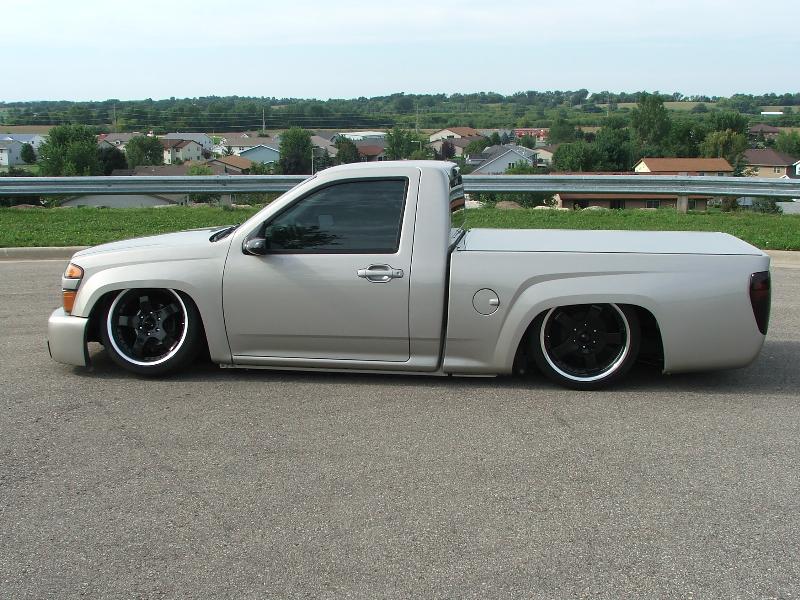 Street Scene Bumper, Grille and Bumper Inserts, Mirrors, Roll Pan, Checkmate Tonneau Cover, Painted to Match Handels, Canyon Conversion Front Clip Painted to Match, New Headlights, and Smoked TYC Tails.