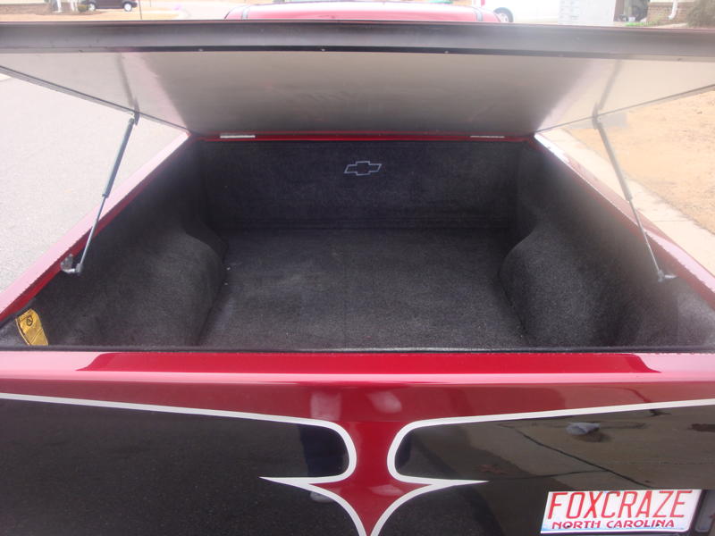 black Smoothed wrapped Headliner deleted visors, Seats chopped head rests wrapped Black vinyl and red suede centers, red suede door inserts