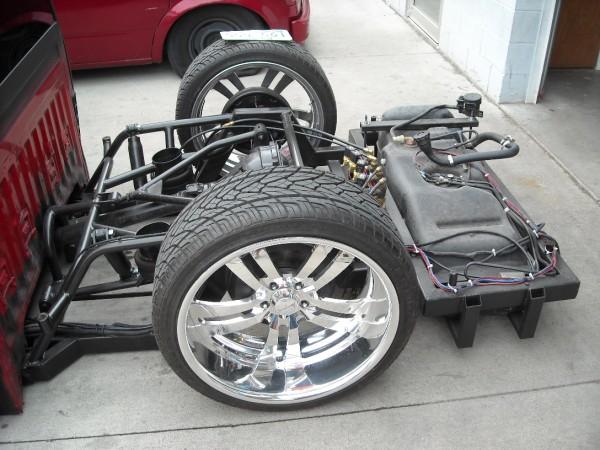 stock floor bodydrop raised tranny back halfd three ling bags on the bars shortened rear end 12 inches to run the 22x10 4 inch backspacing