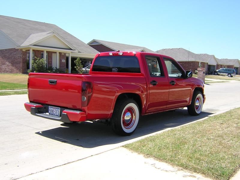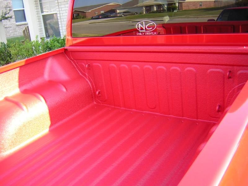dechromed and painted bumpers, painted grille, zq8 airdam, pinstriping, red rhino lining