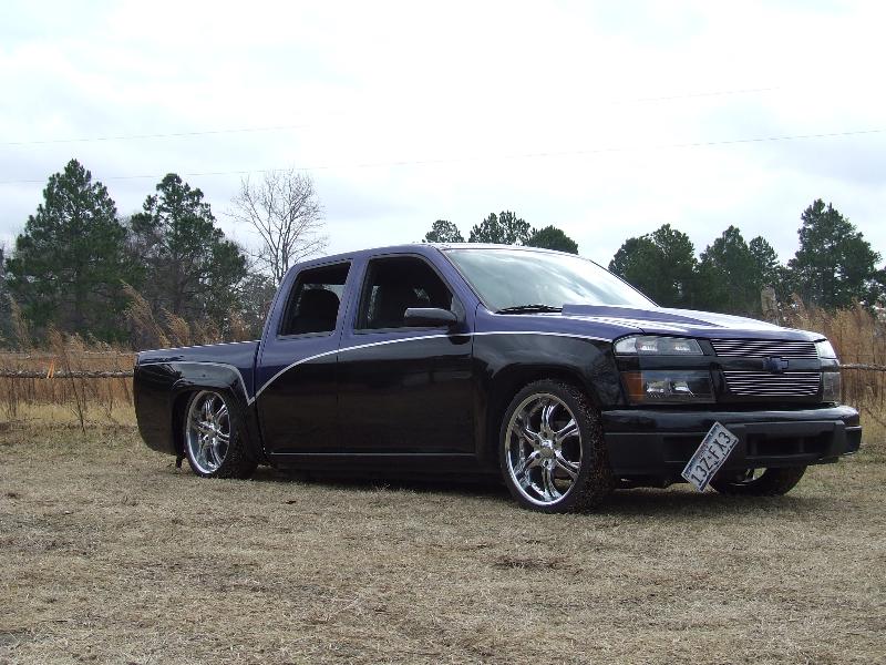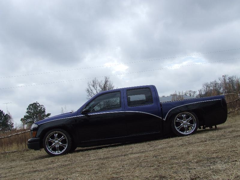 Cowl hood, billet grill, roll pan. flip out licsense plate, all 4 doors shaved, third brake light shaved, tail gate handle shaved, gas door shaved 2 tone paint. blue/black with silver pinstripe. smoked tails