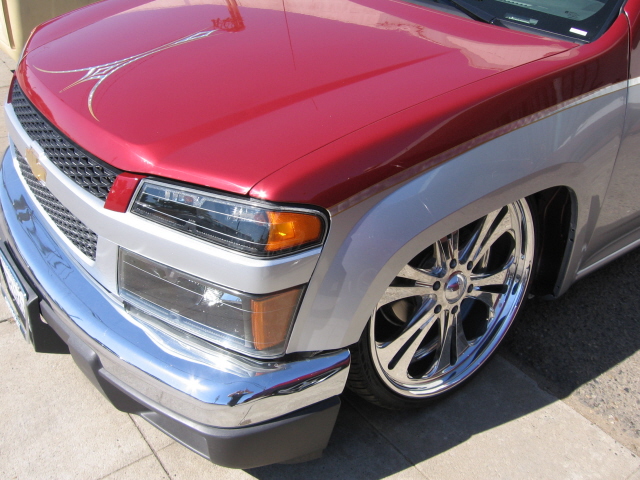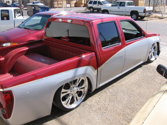 shaved, custom paint, custom tubs, notchcover. colormatch line-x. shaved and two tone. silver leaf w/ gold.