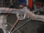 2x3 mandrel bent Art Morrison frame rails in rear narrowed 6”