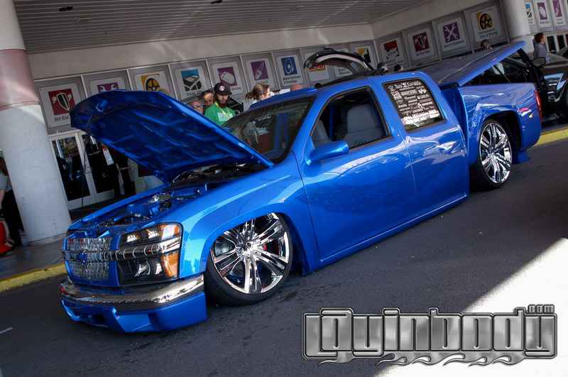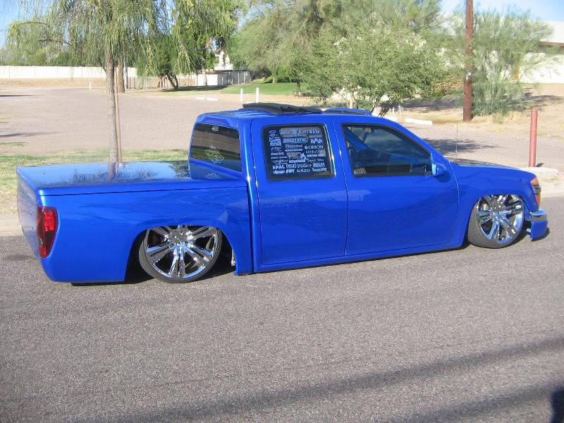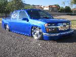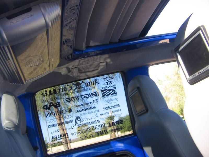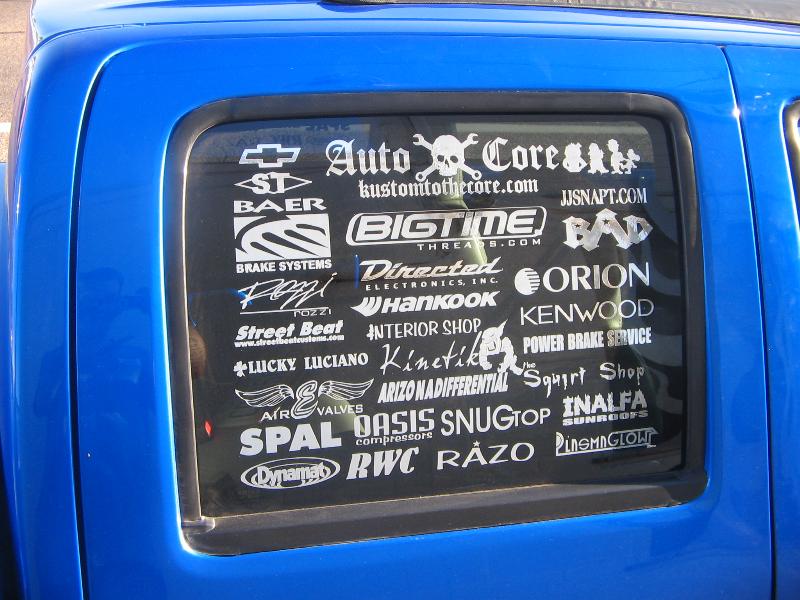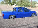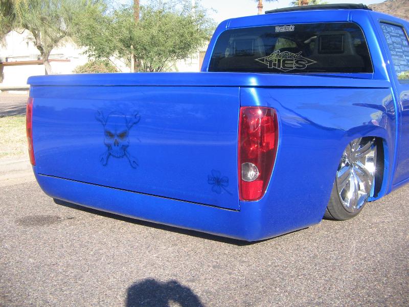 shaved door handles, gas filler, tailgate handle, led 3rd brake light, rollpan, Inalfa power sliding ragtop,HouseOfColor true blue pearl over white base with airbrushed graphics