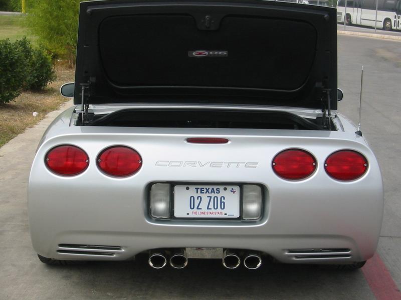 Quiksilver HT Zo6 with sidescoop screens and front brake inlet screens, cross drilled/slotted rotors with ceramic pads, Laser cut stainless steel front & rear bumper letters, Z06 exhaust plate. Chrome shorty attenna.