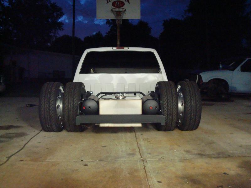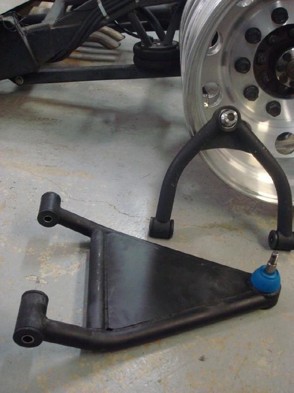 Devious A-arms, single wheel front hubs, back half, triangulated 4 link, narrowed axle, Slam RE-8"s, Bilstein shocks...more to come