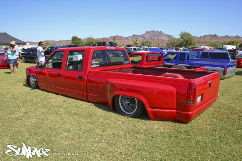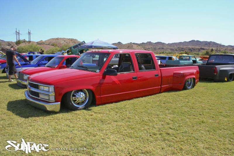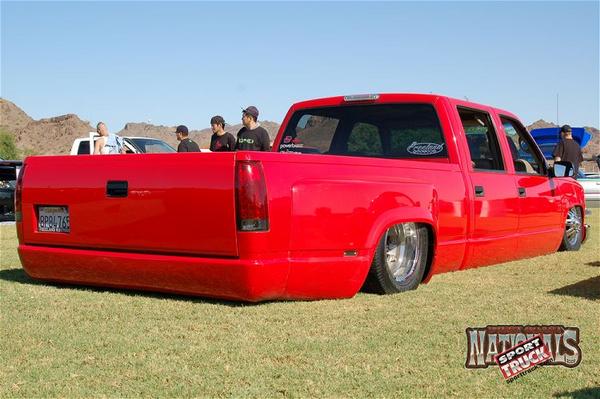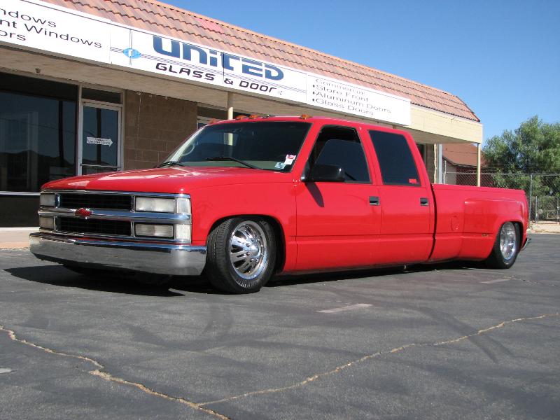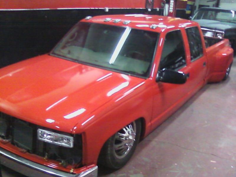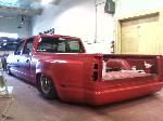 red, custom bolt on lights, plate in gate, roll pan, repainted, Body dropped to the rockers.