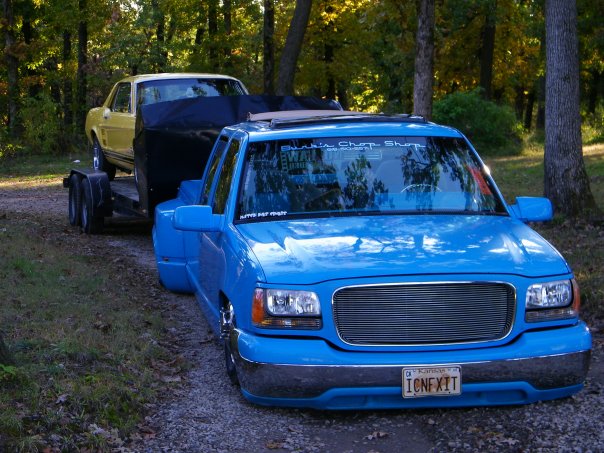 channeled, caddy front clip, sliding ragtop, shaved cab markers, shaved 3rd brakelight, shaved talgate handle, rollpan w/ hidden hitch, custom sheetmetal inner bed w/ toolbox