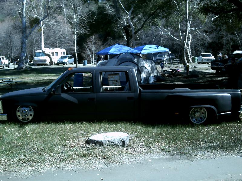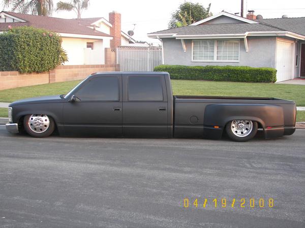 Projector head lights, billet grill, shaved tail lights replaced with catty tail's, relocated tail gate handle, stretched and raised rear fenders and 3" body drop.