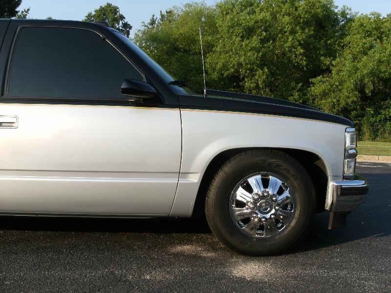 two tone, shaved stack pocket holes and tailgate. phantom billet grille