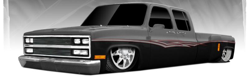 shaved roof lights, 59 chevy door handles, suicide rear doors, custom hotrod mirrors,grant kustoms rollpan and tailgate skin, billet grille, smoothed bed,shaved stake pockets, relocated rear door handles,smoothed front bumper