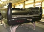 chrome front bumper w/recessed lic. plate, grant kustoms rollpan, and handle relocator. clear headlights, turn signals and corner lights and billet grill. shaved tailights with watsons streetworks leds. urethane black primer with tru blu pearl flames pinstripped in lime green