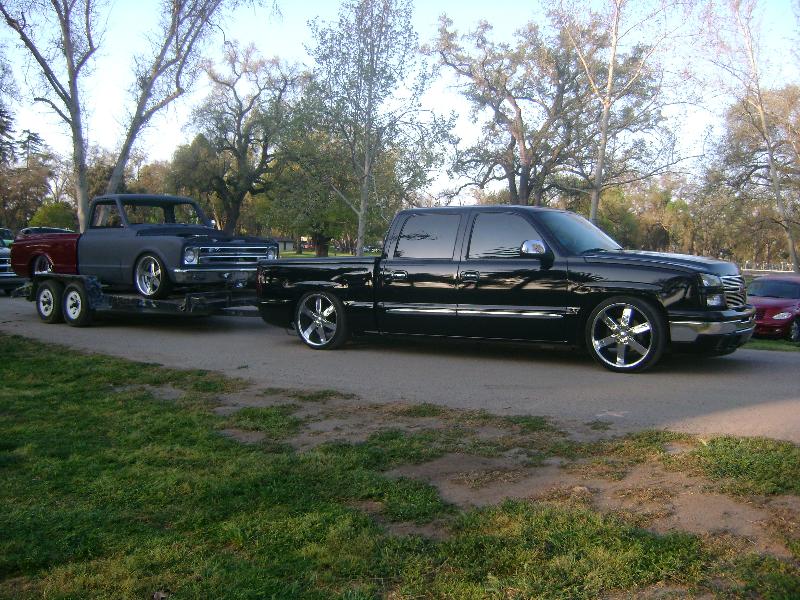 smoked led taillights ,third brake and front corners tinted plate and windows chrome mirror caps,caddy handles, snugtop cover powdercoated rotors and drums arctic white lights all in front and leds all around shaved tailgate,rollpan,gmc chrome side moldings capped off antenna,billet grille painted bow and bottom bumper