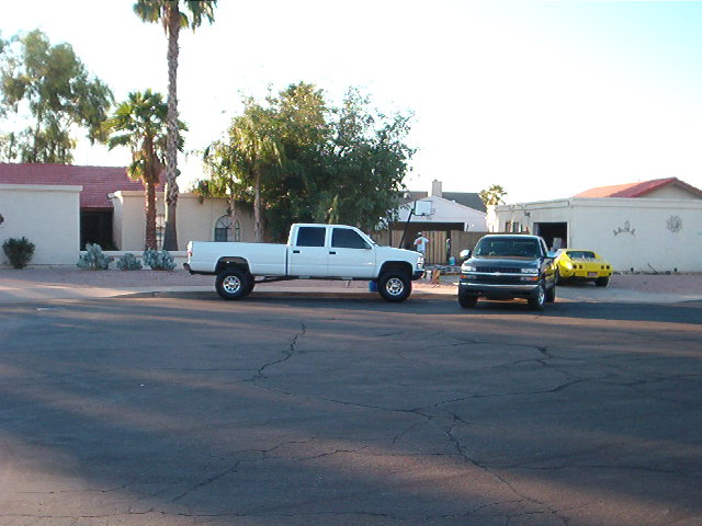 454, with fan clutch removed and electric fans installed. K&N filter kit, Mass air flow sensor installed. With Flowmaster exhaust dumping out right before the hitch to were you don't see it.