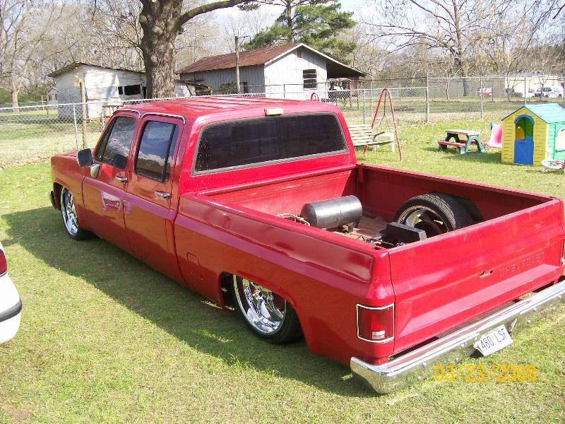 2link panhard, all 1/2 in valves and line,3" belltech drop spindles,and belltech shocks,just added two viair 380's and five gallon tank.