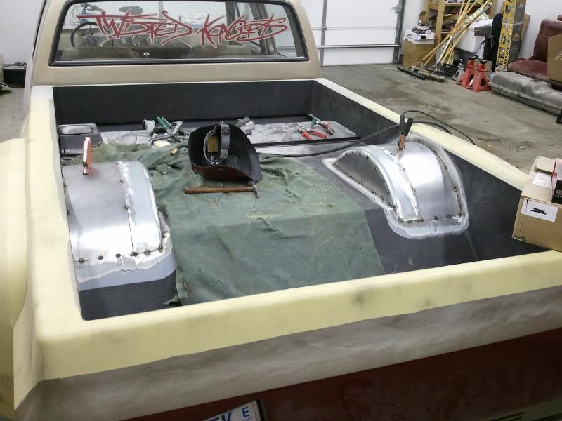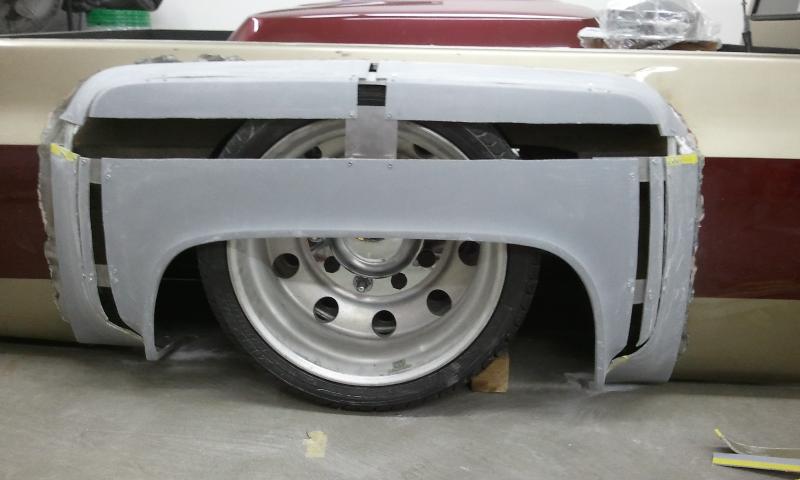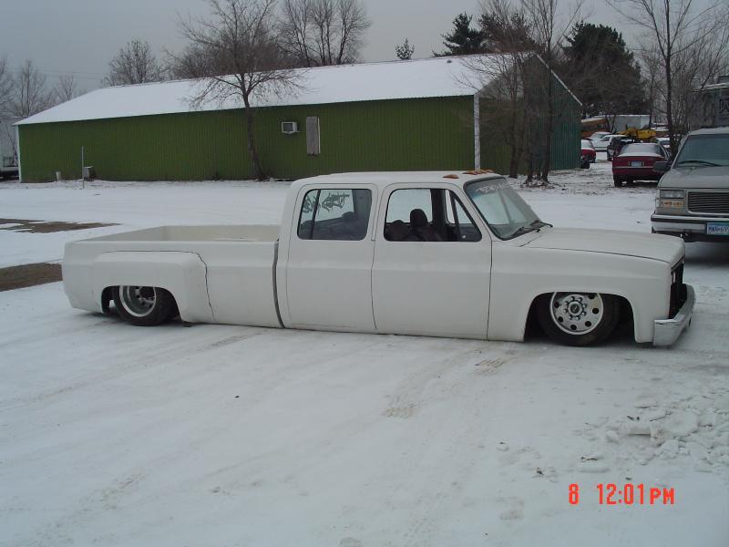 Shaved front and rear marker lights, door handles and key holes, wiper cowl, tail lights, tailgate, both gas doors, stake pockets, upper cab seems, drip rails, fire wall, tailgate and roll pan welded in. Rear flares are molded in. Suicide rear doors, rebuilt inside of bed with square tubing and smoothed it all out, body dropped.Cadillac Seville 3rd brake light, front inner fenders, cowl hood. Two tone Cashmere Biege and Red Fire paint. New suburban grill. Line-X spray-in bed liner