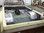 Painted headliner, door panels, and all of the pillar trim. Seats out of a 99 Tahoe with Katzkin covers, custom sheet metal dash with Auto Meter gauges. Lokar floor shifter. Flaming River stainless column. Custom center console and made kick panels and a few other fiberglass pieces