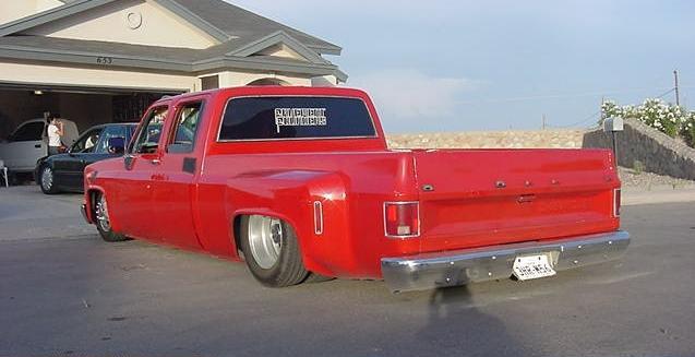shaved back door handles, rain gutters, emblems and antenna, fender lights, and Front coner lights.Custom mirror. Front bumper moved 1 1/2 closer to body. phantom grille. 89-98 clear cab lights,and tailgate skin.