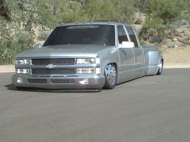 orion silver ,clear Headlights, billet front grill ,all clear marker lights, And a 3ft electric sliding tampon. cadi lights, shaved handles, shaved stakepockets, shaved and sectioned gate, and rollpan. Tilt front hood,One suicide rear door, the other is soon to come. Ok saved the best for last it has a 3 3/4 in body drop to lay the rockers flat on the asphalt.