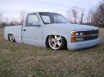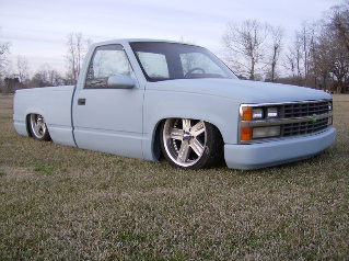 Shaved tailgate, shaved stake pockets, wood bed floor Cal VU mirrors, sheet metal bed, Shortened and recessed front bumber