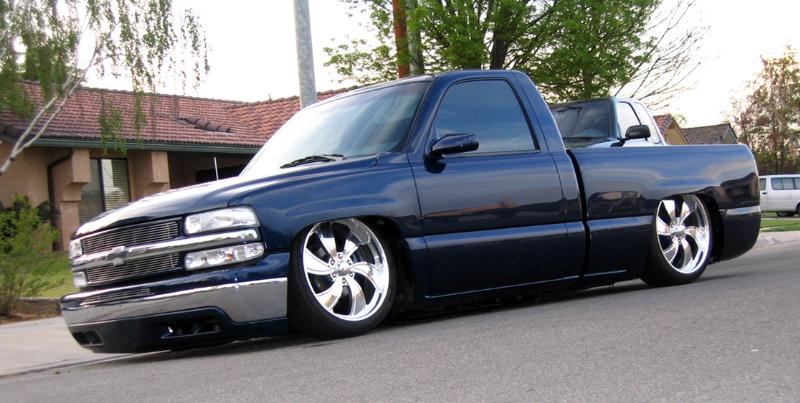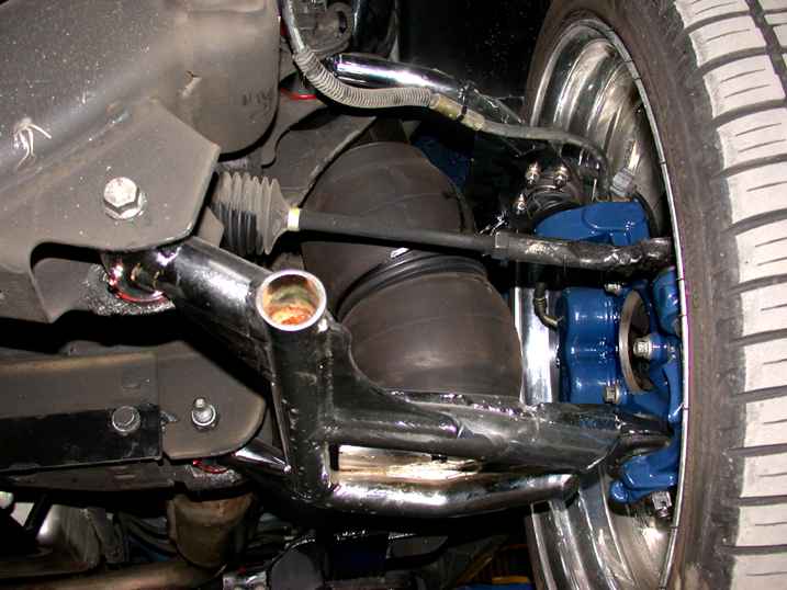 CHROME KRZ CUSTOMS 4 link, Slam Specialties HS bags, 1/2 inch lines,F.B.S.S. PANCAKE. KRZ CUSTOMS CHROME upper and lower control arms. Raised gas tank, KRZ crossmember, Blue Powdercoated brake calipers, spindles and rotors!